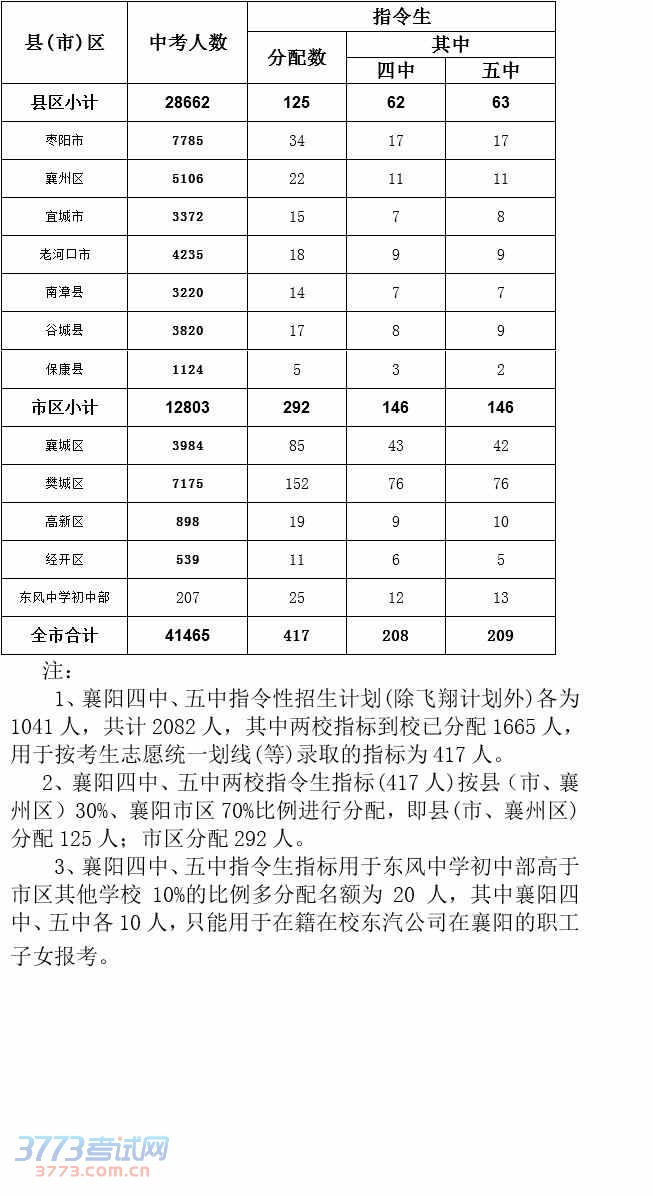 [图文]2014年襄阳四中、五中指令生指标分配表