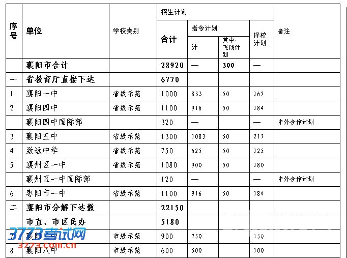 今年全市普通高中招生计划总量为28920人,中等职业教育(不含技工学校)招生计划为15000人。