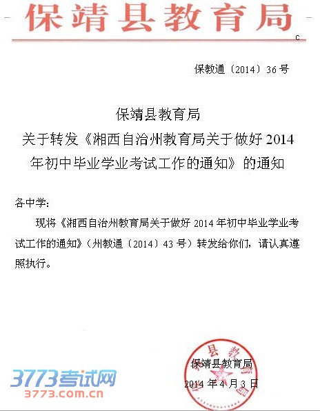 湘西自治州教育局关于做好2014年初中毕业学业考试工作的