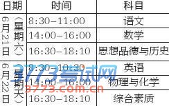 考试时间表
