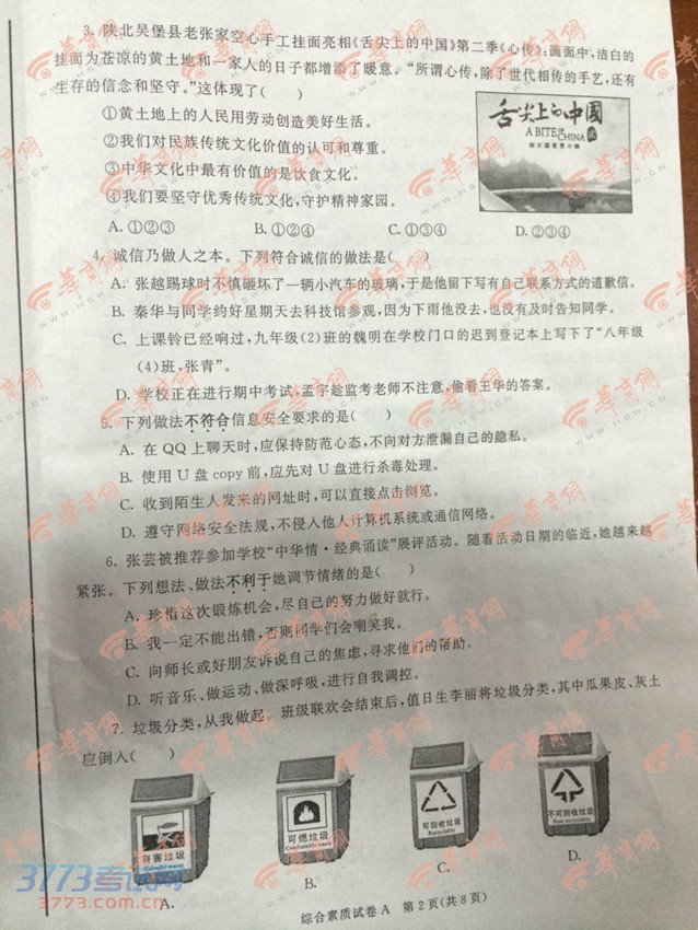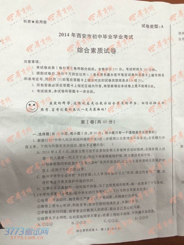 [组图]2014西安中考综合素质试题试卷