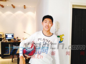 中考第一名吴天阔是个爱足球的阳光男孩 记者 李安定 摄