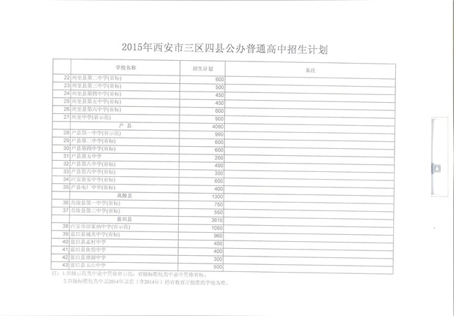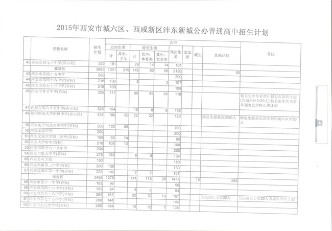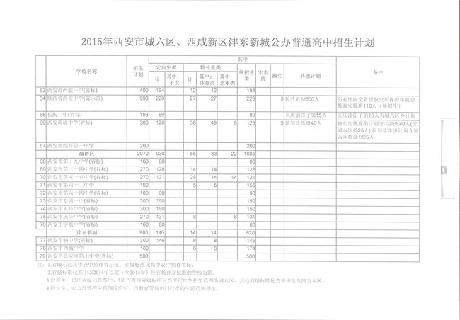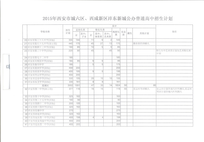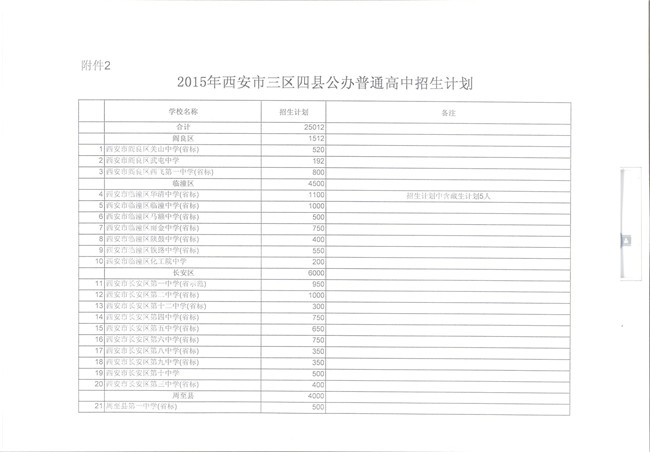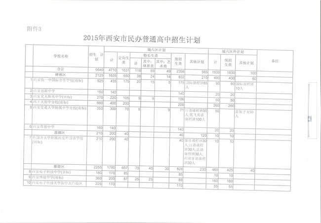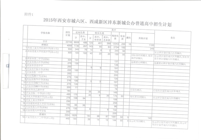 附件:1. 2015年西安市城六区、西咸新区沣东新城公办普通高中招生计划