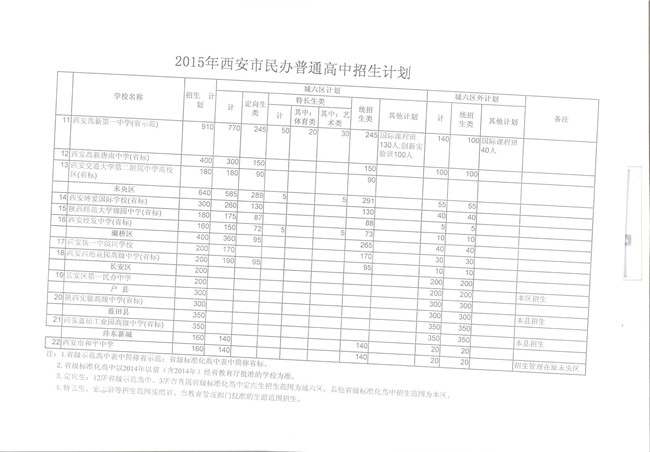 各区县教育局根据《西安市教育局关于下达2015年基础教育分区县招生计划建议数的通知》(市教发〔2015〕13号)上报的普通高中分校招生计划建议数,经我局审定,现将《西安市2015年普通高中分校招生计划》印发你们(见附件),请遵照执行,并就有关问题通知如下: