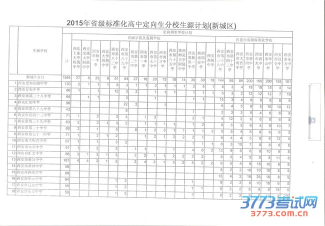 西安市教育局2015年城六区及西咸新区沣东新城省级标准化 高中定向生分校生源计划的通知