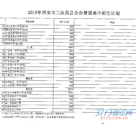 西安市教育局关于下达2015年普通高中分校招生计划的通知