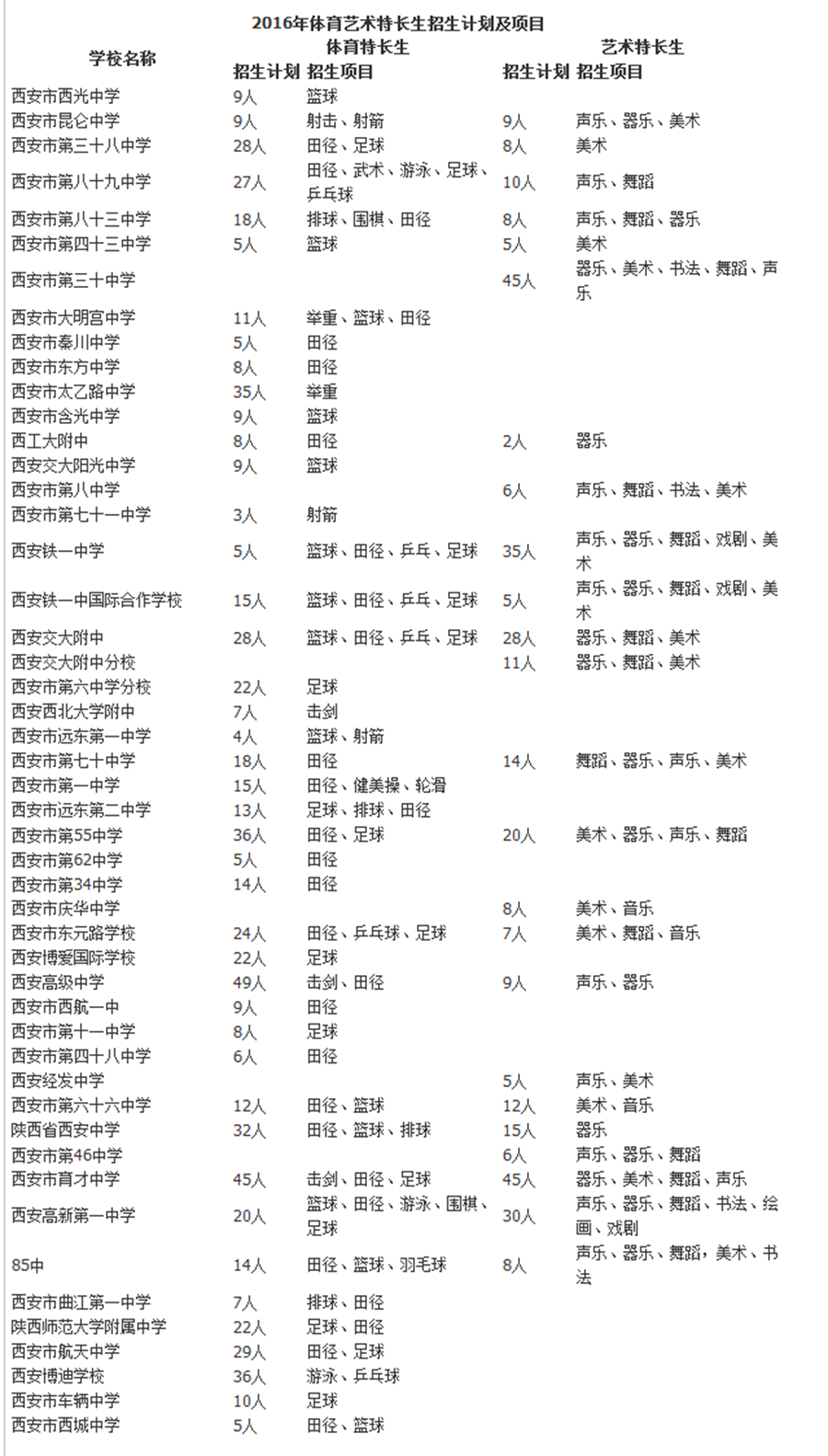 [图文]2016西安中考体育艺术特长生计划项目公布