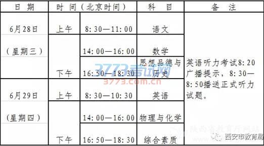 初中毕业升学学业和综合素质统一考试时间为2017年6月28日至29日。
