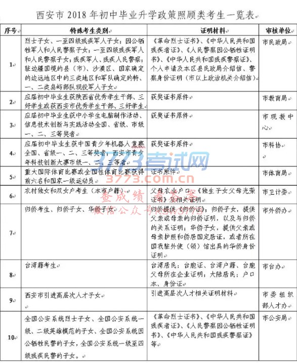 1、凡属于以上政策照顾类考生,均需填写《西安市2018年初中毕业升学政策照顾类考生证明表》或《西安市2018年初中毕业升学农村独女和双女户考生证明表》,经审核单位审验盖章后有效。