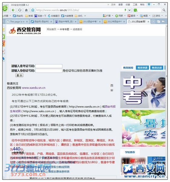 西安网讯 (记者 赵鹏)今日(7月16日)许多西安网网友在网上向记者爆料,今日又是一年一度的西安中考成绩公布日,成绩也将在12点正式公布。可是成绩公布了,查询不到成绩却成了最头疼的一件事。