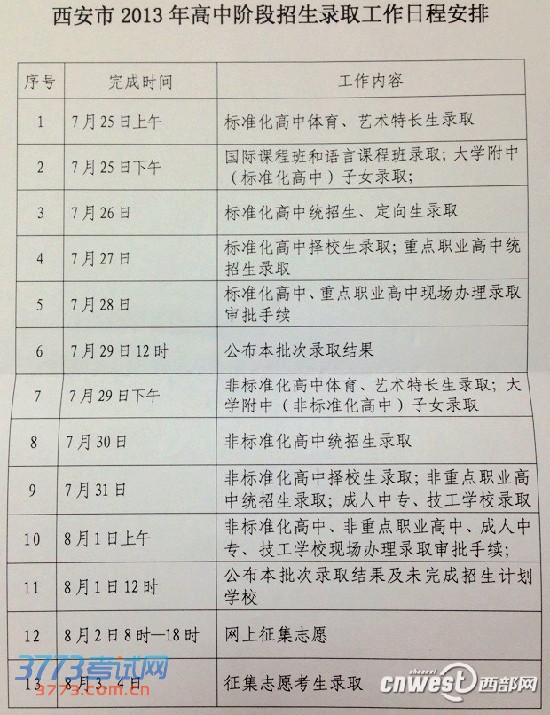 西部网讯 (实习记者 李若非)7月24日,西安市2013年中招录取工作会在西安文理学院召开,会议对西安市2013年中考以及中考志愿填报情况进行了总结,并对2013年西安市中招工作进行了介绍。