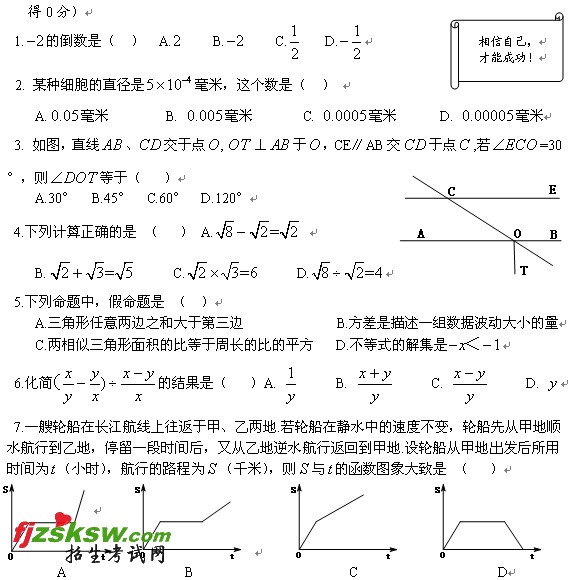 一、精心选一选,相信自己的判断!(本大题共12小题,每小题3分,共36分.在每小题给出的四个选项中只有一项是符合题目要求的,不涂、错涂或涂的代号超过一个,一律