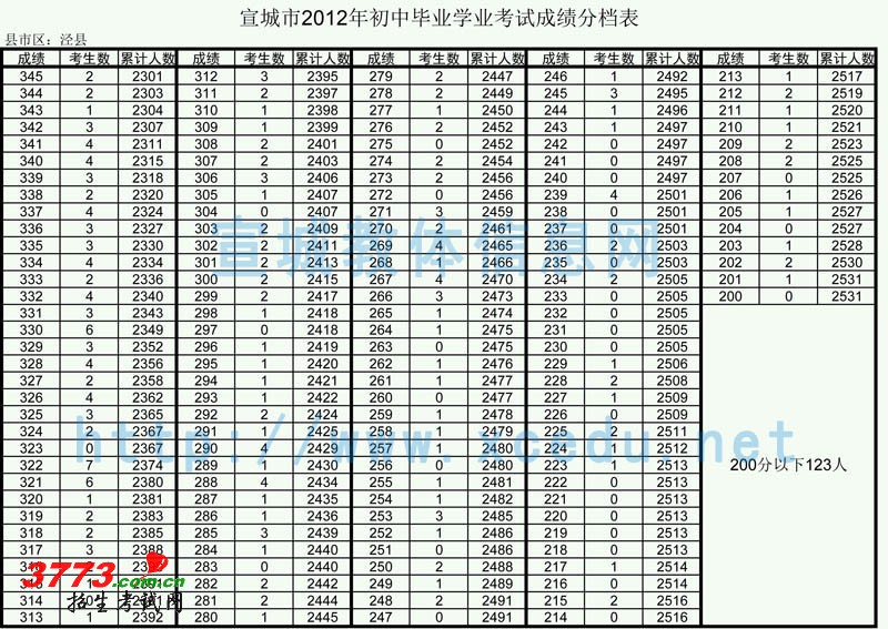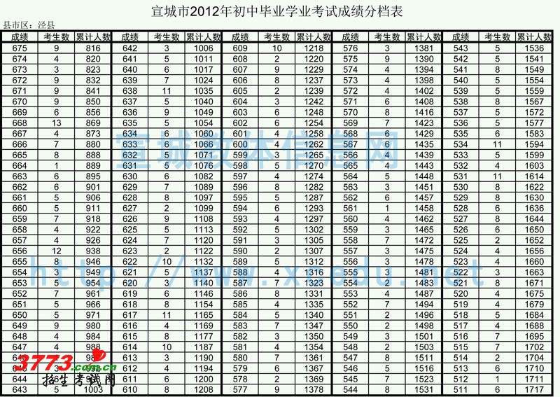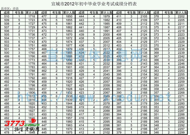 [组图]宣城市2012年初中毕业学业考试成绩分档表(泾县)