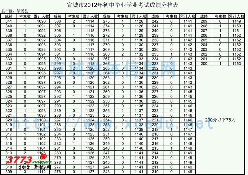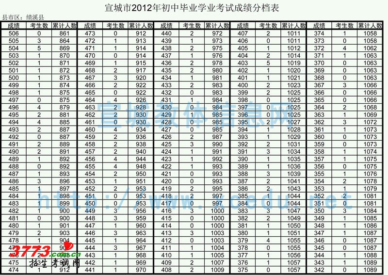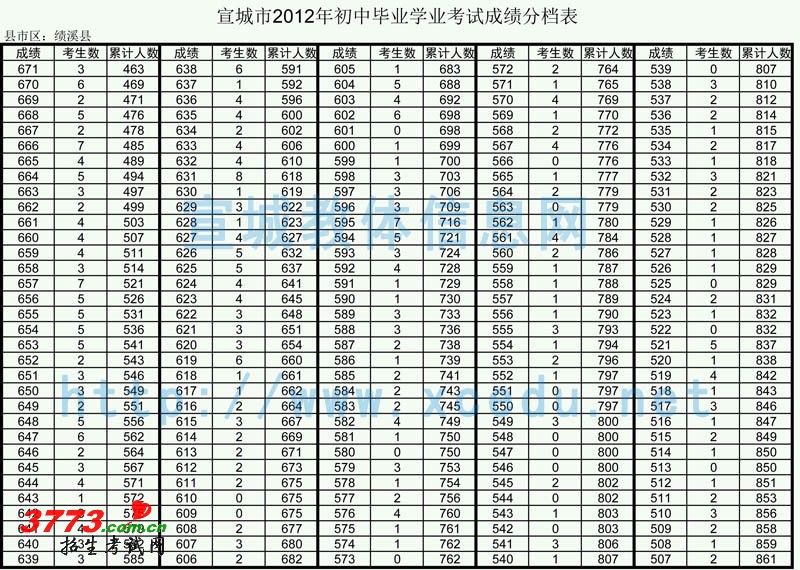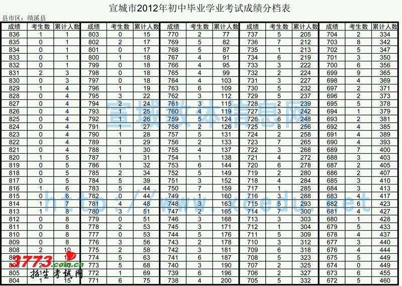 [组图]宣城市2012年中考考试成绩分档表(绩溪县)