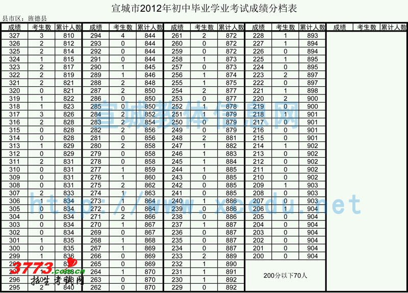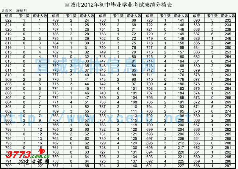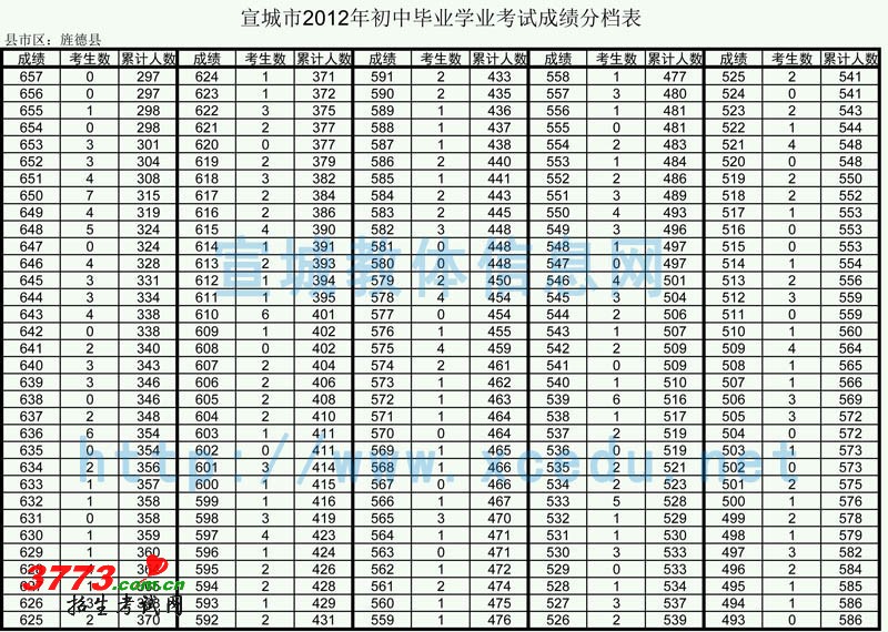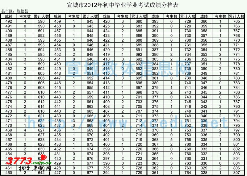 [组图]宣城市旌德县2012年初中毕业学业考试成绩分档表