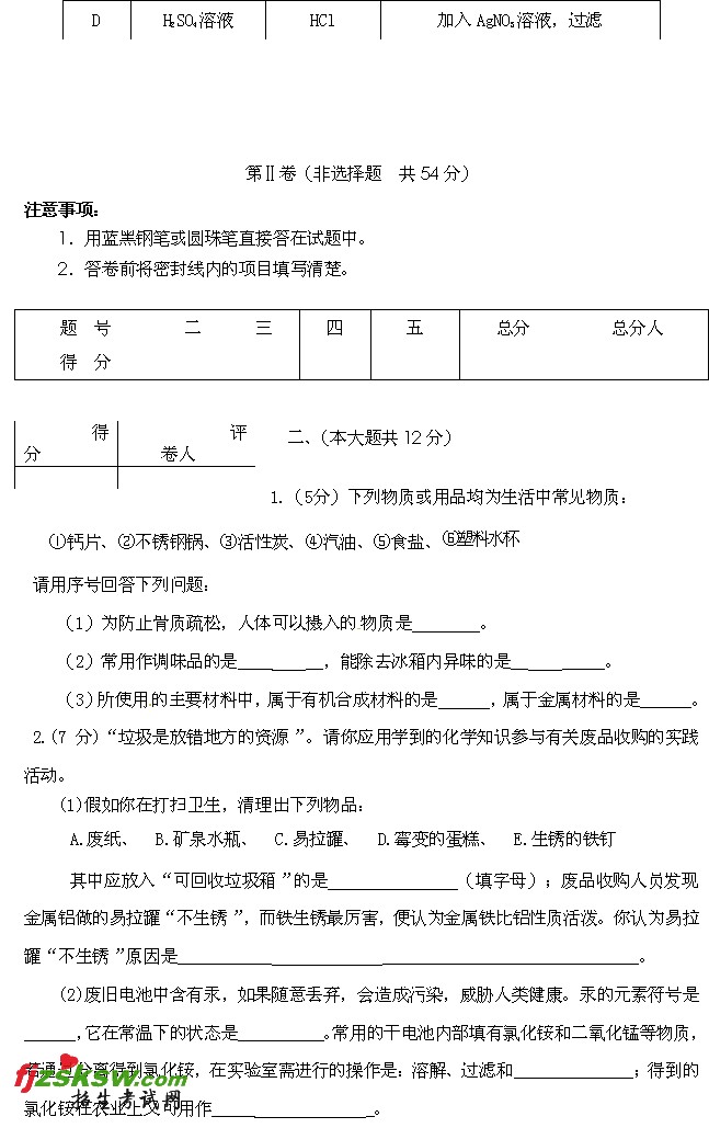 [组图]四川雅安2011年中考化学试题及答案
