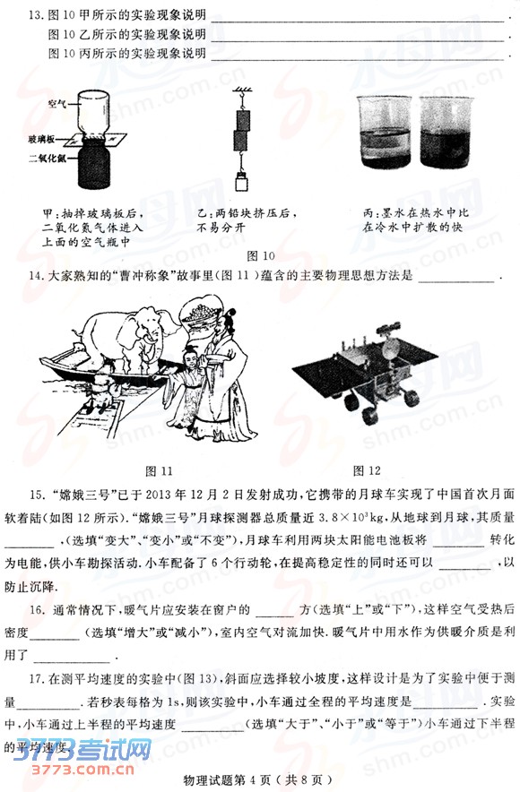 [组图]2014烟台中考物理试题试卷发布