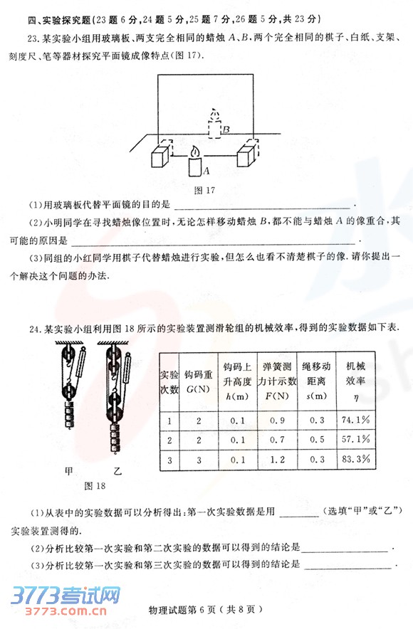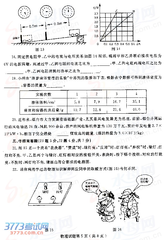 [组图]2014烟台中考物理试题试卷发布