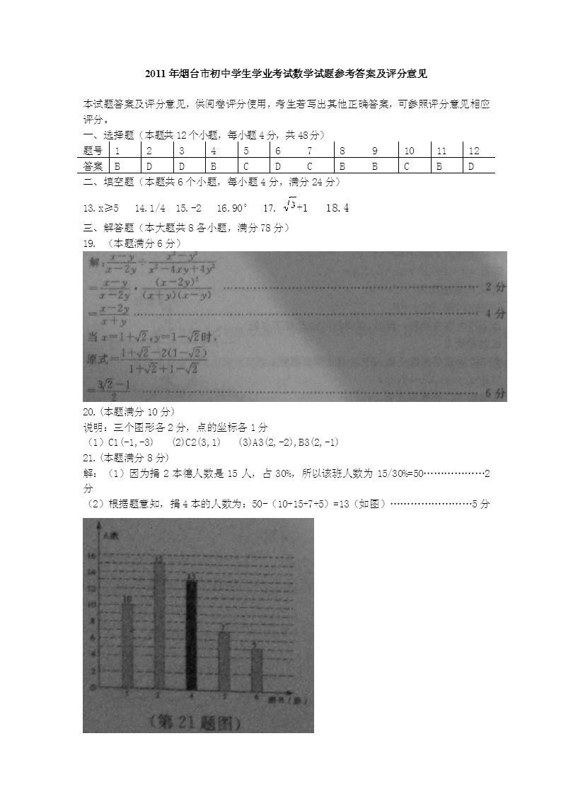 [组图]山东烟台2011中考数学试题及答案