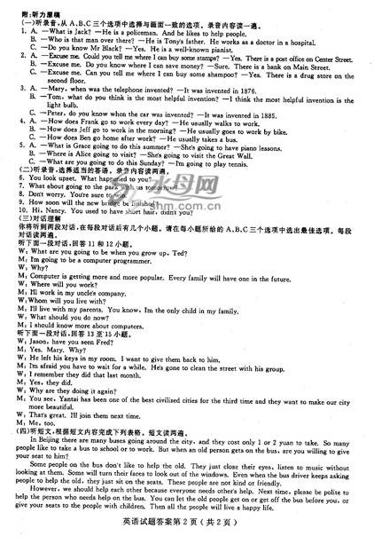 [组图]2012年烟台中考英语试题答案发布