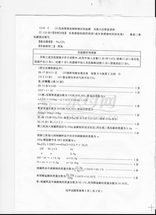 [组图]2013烟台中考试题及答案:化学试卷及答案发布
