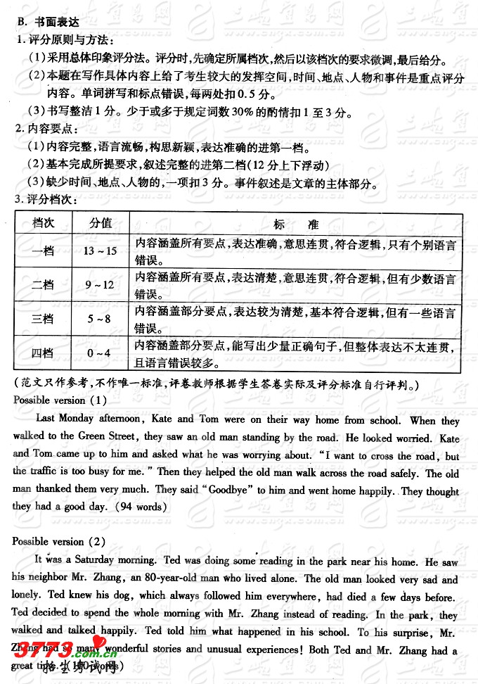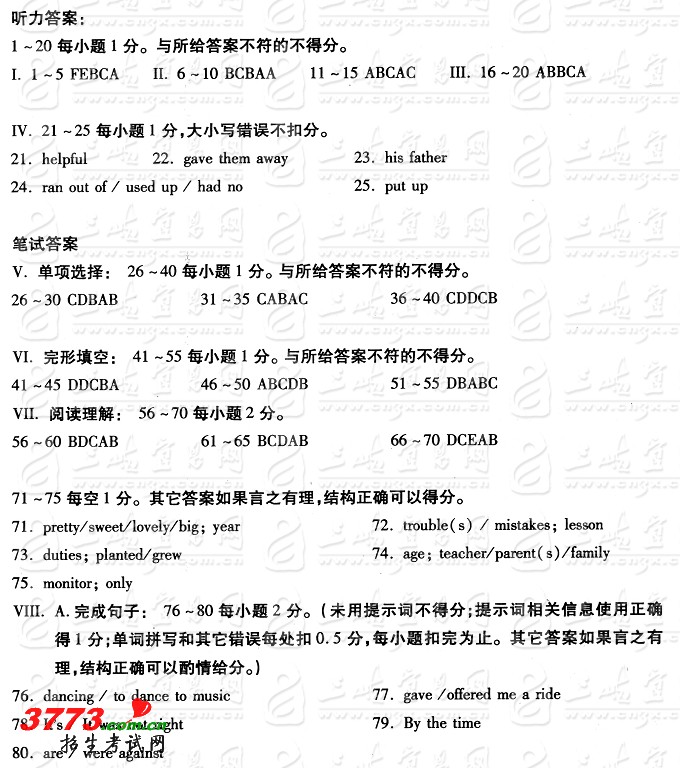 [组图]2012年湖北省宜昌市中考英语参考答案