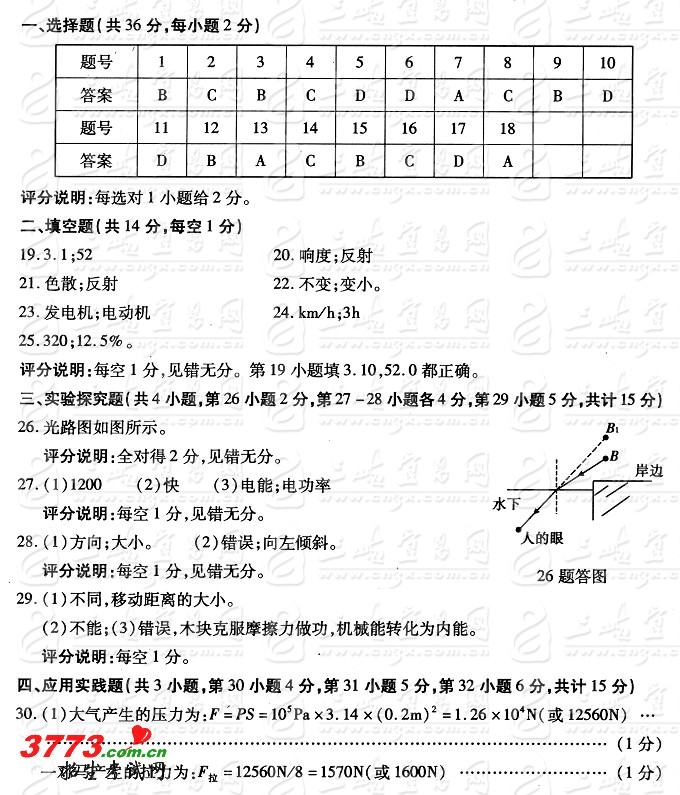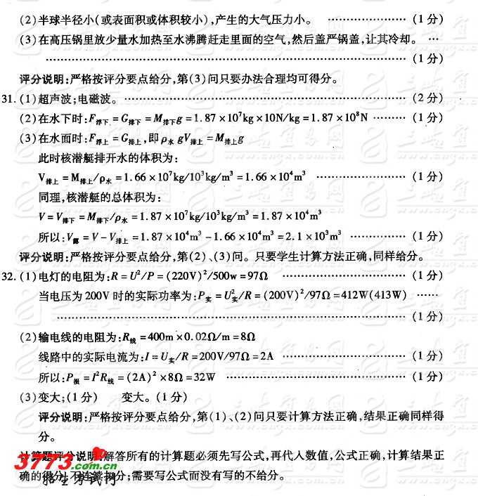 [组图]2012年湖北省宜昌市初中毕业生学业考试物理参考答案