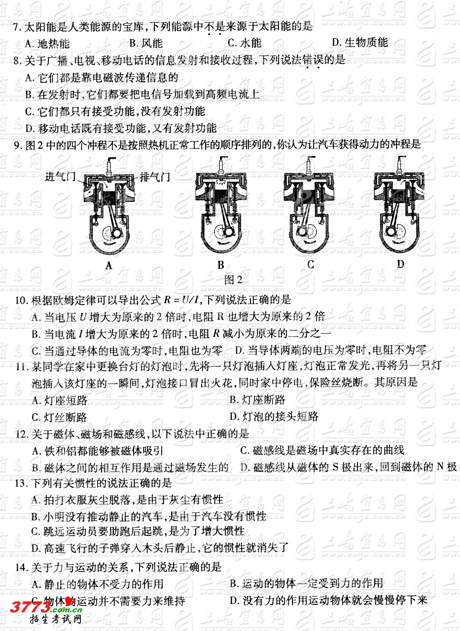 [组图]2012年湖北省宜昌中考考试物理试卷