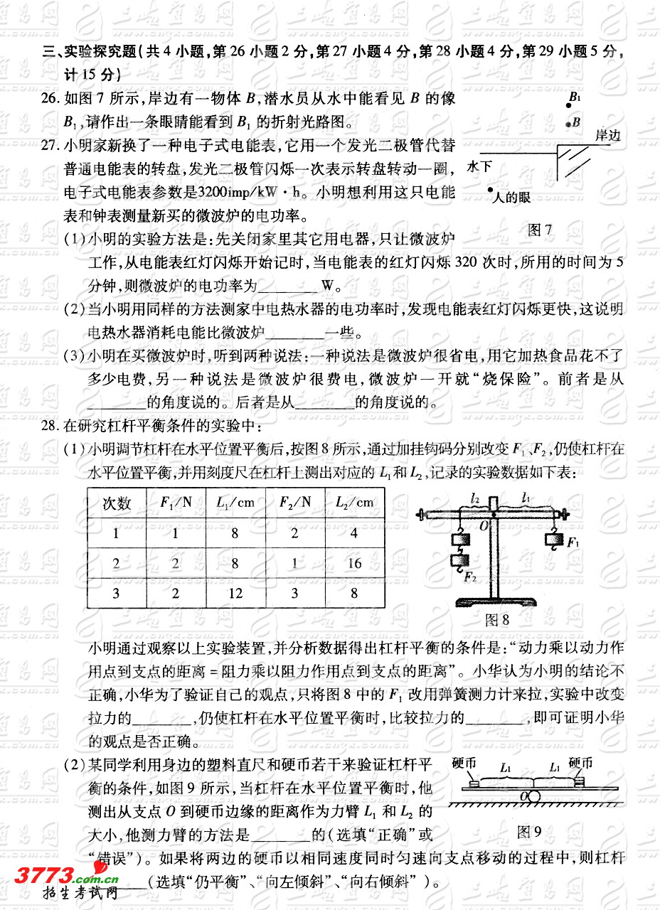 [组图]2012年湖北省宜昌中考考试物理试卷