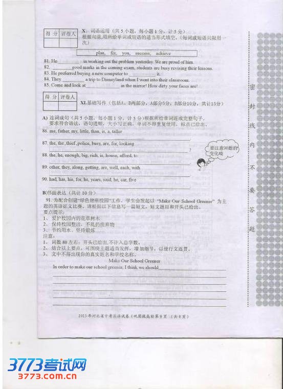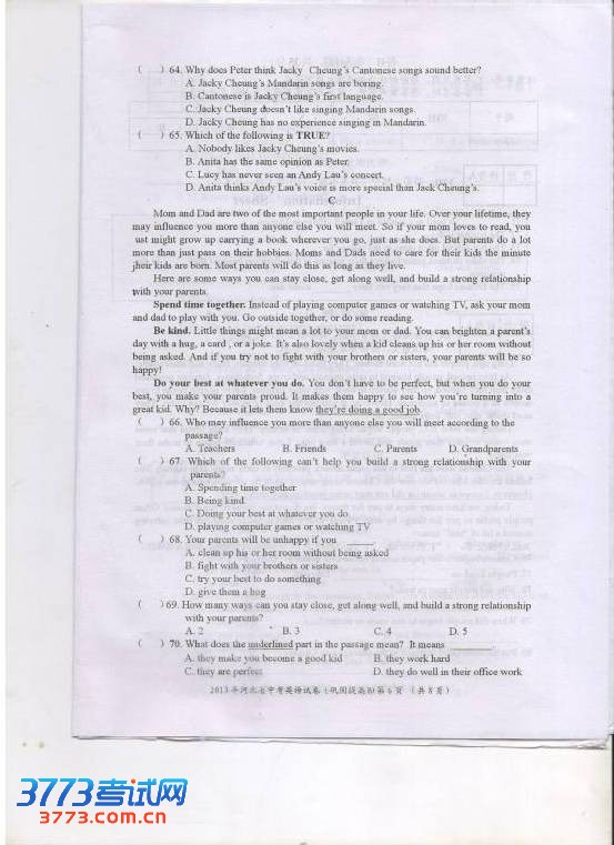 [组图]2013河北中考巩固提高联考英语试卷答案