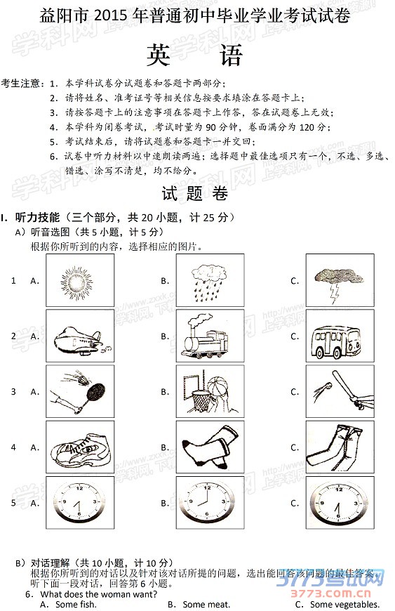 后及时公布中考试题、答案和中考作文。祝各位考生都能取得好的成绩。2015年湖南益阳中考英语试题及答案(图片版):