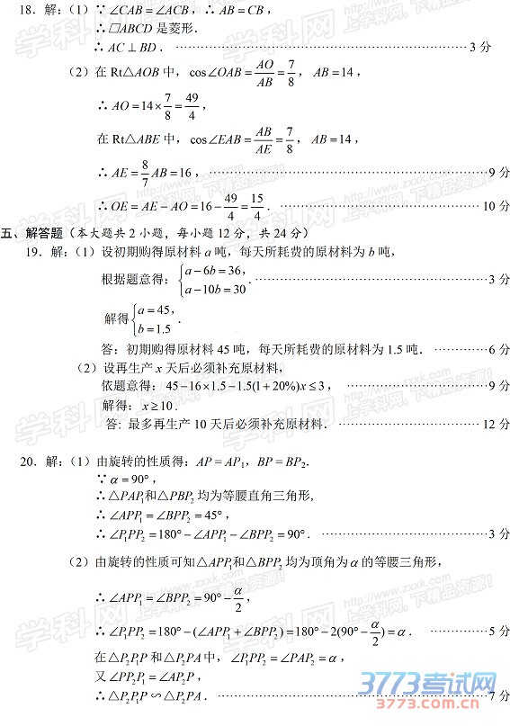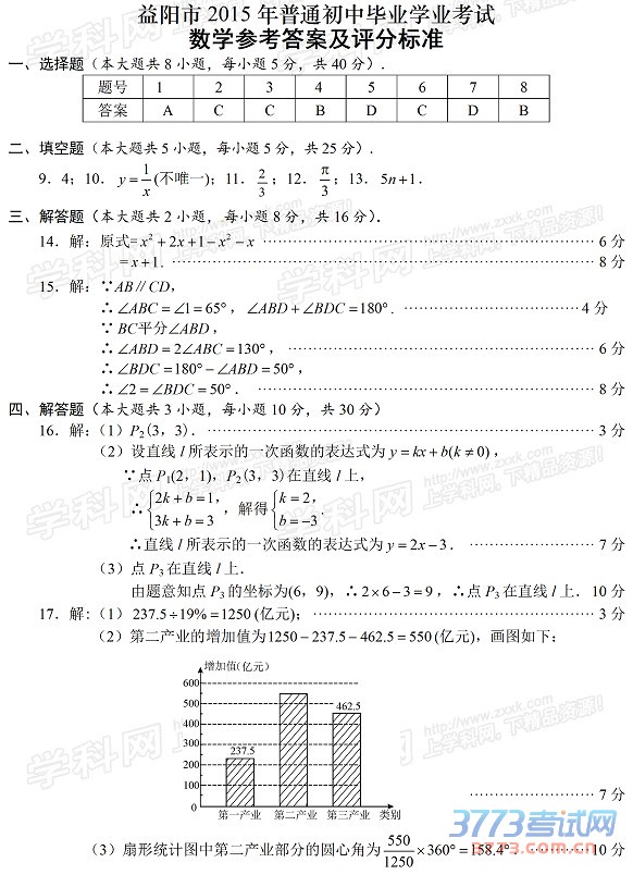 [组图]2015益阳中考数学试题及答案评分标准发布