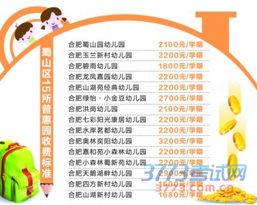 根据合肥市计划,普惠园要占到民办幼儿园的60%,近年来,蜀山区逐步增加普惠园数量,目前全区普惠园已达到23所。按照蜀山区有关文件规定,这15所普惠性民办园的收费标准自2015年秋季开始执行,有效期为一年,以后每年收费标准需重新核定,本次拟定的收费标准为各园的收费上限,在实际执行中下浮不限。