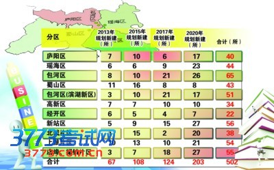 2013年规划新建幼儿园3所,2014-2015年规划新建幼儿园7所,2016-2017年规划新建幼儿园18所,2018-2020年规划新建幼儿园27所。(刘媛媛、张沛、余红霞)