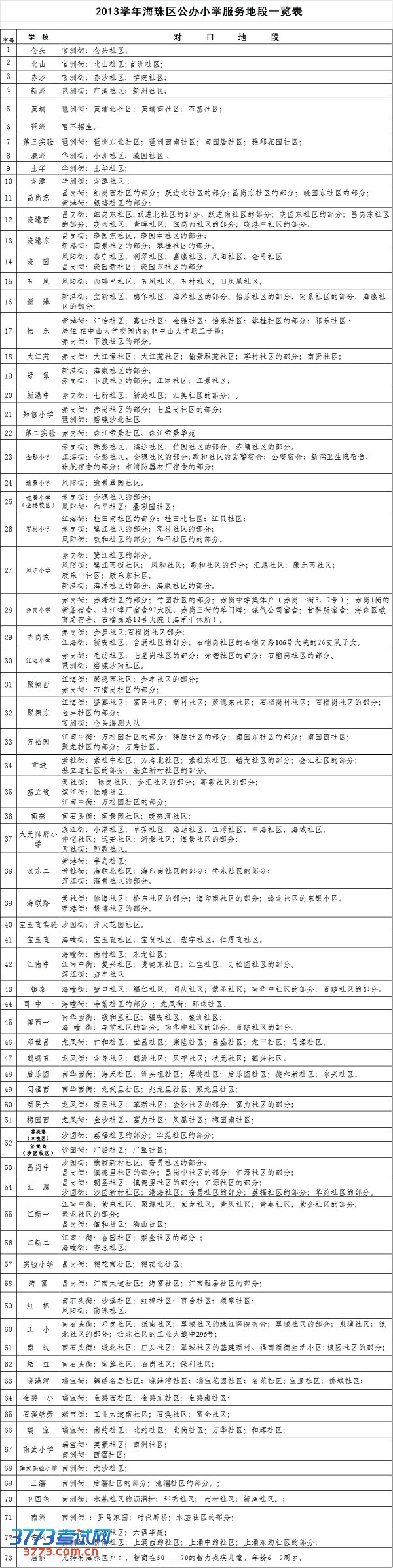 [图文]2013年广州海珠区公办小学划片地段一览表