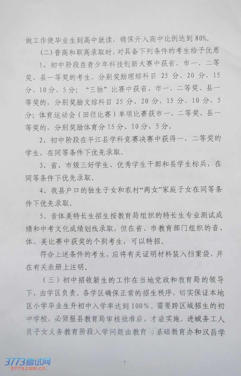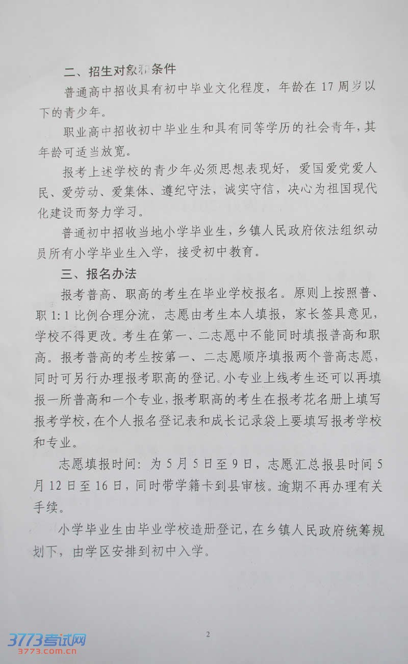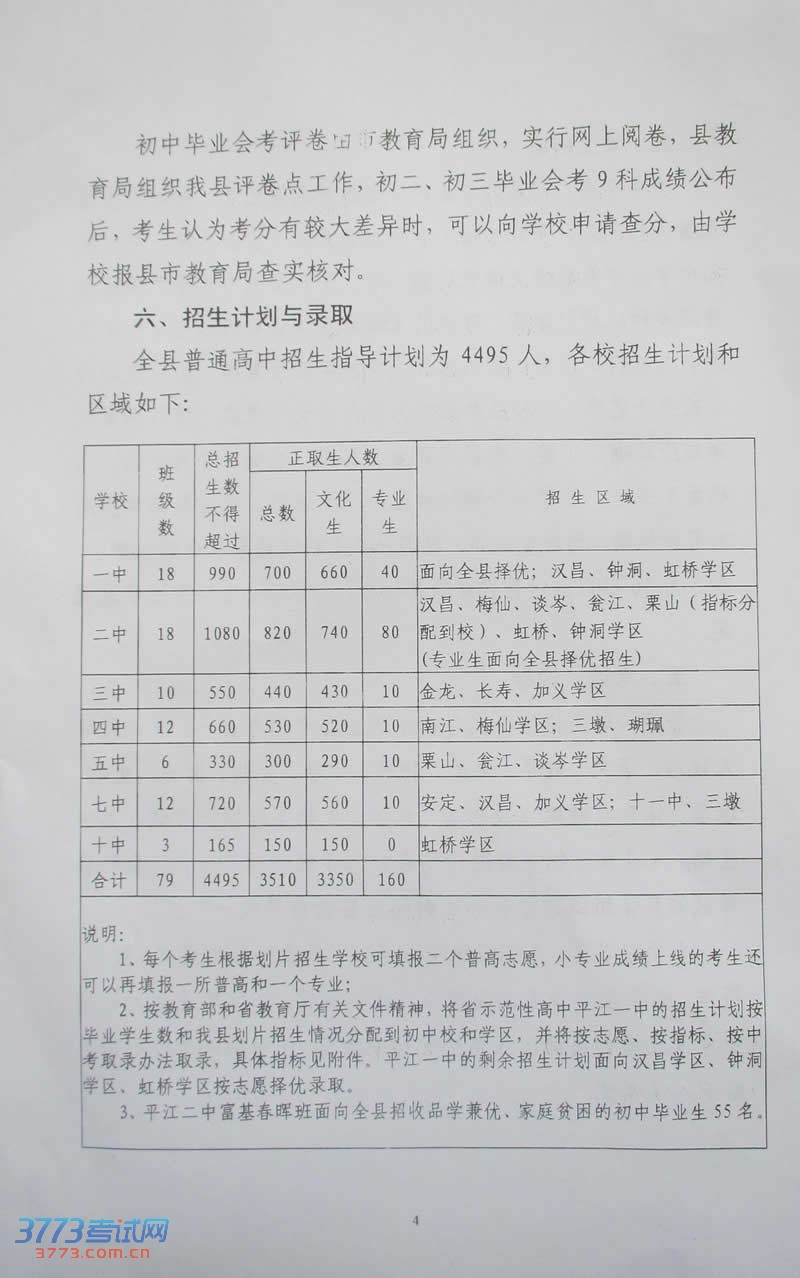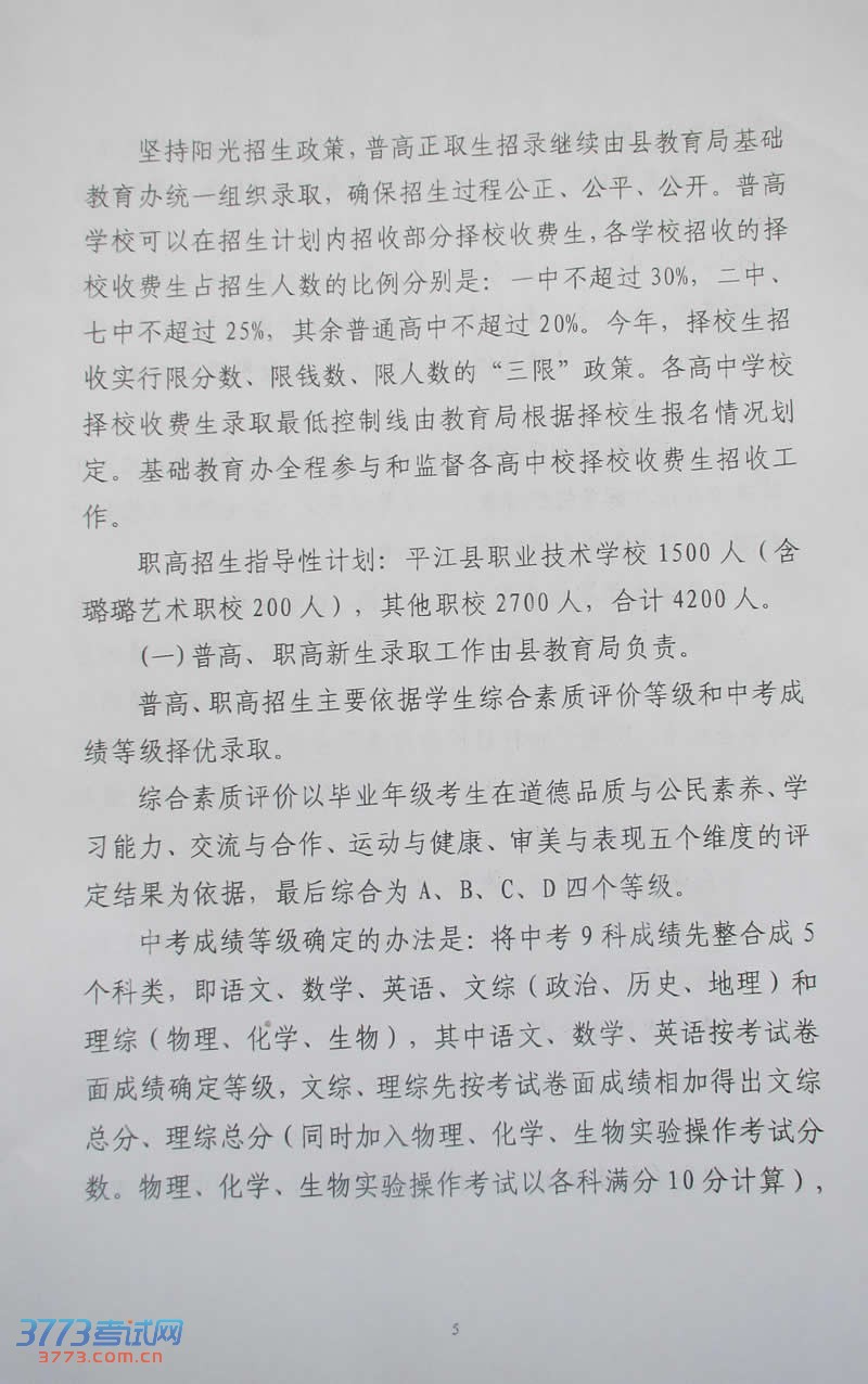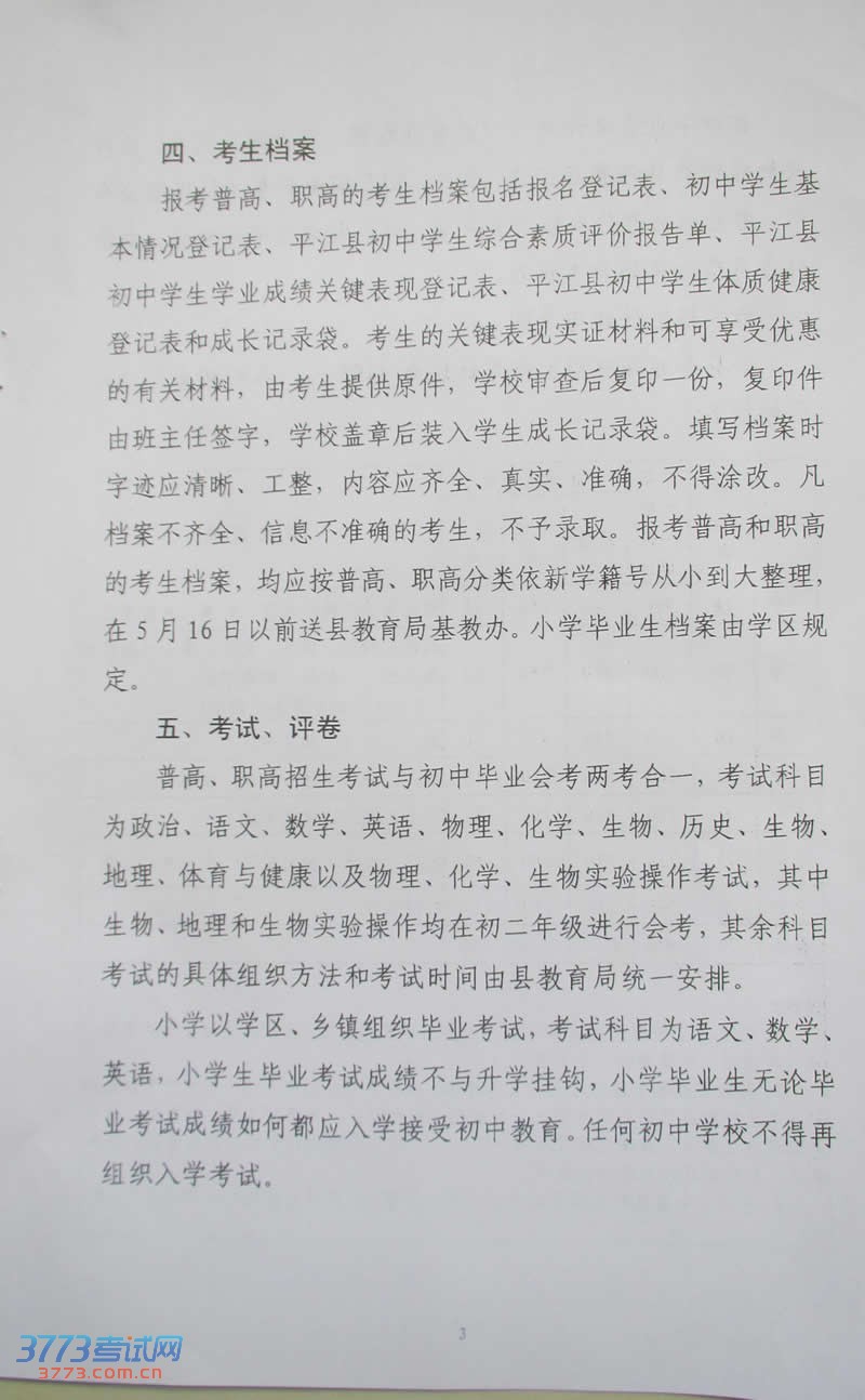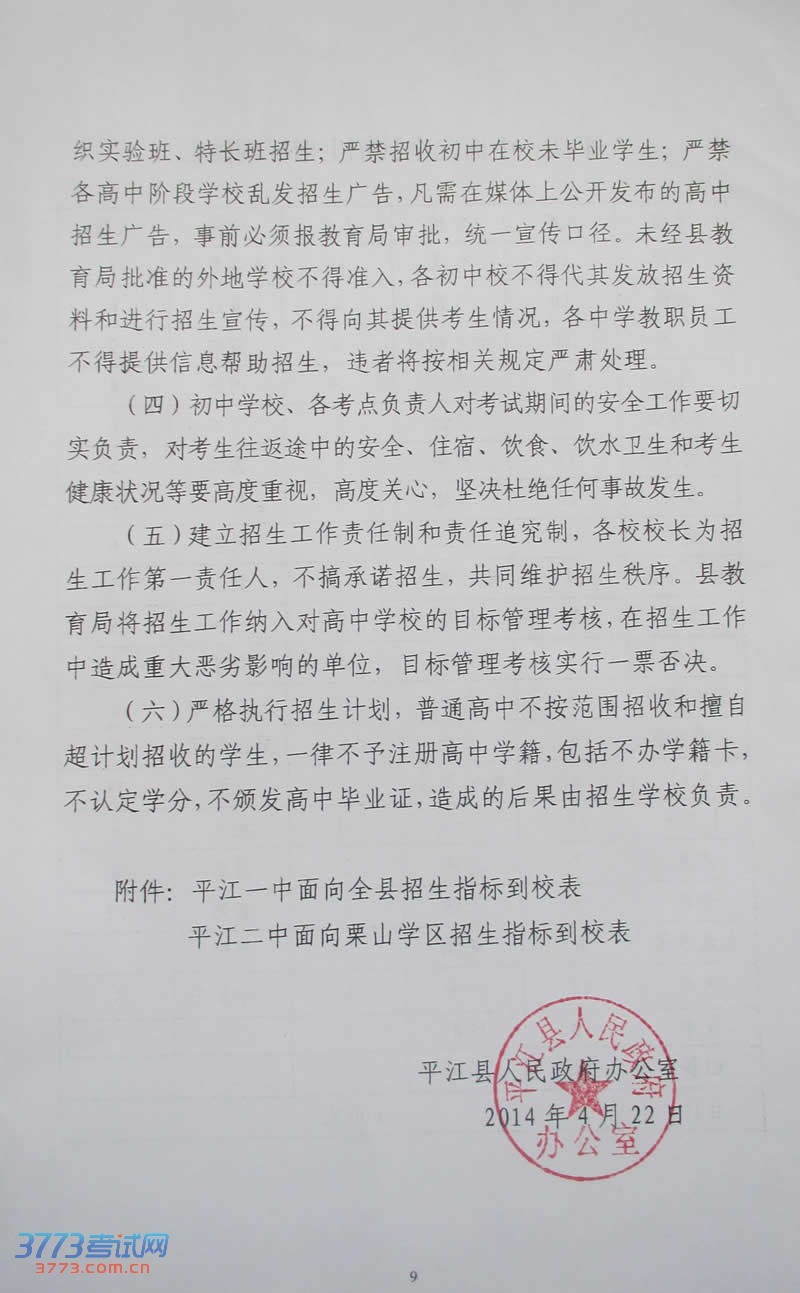 [组图]2014岳阳平江县普通中学和职业中学招生工作通知