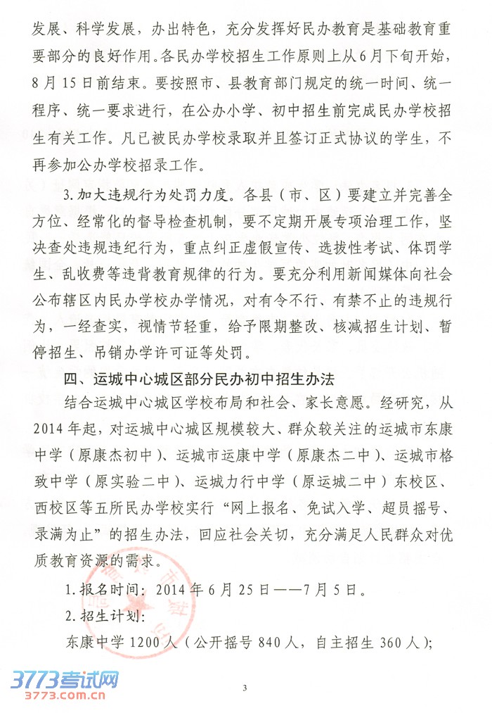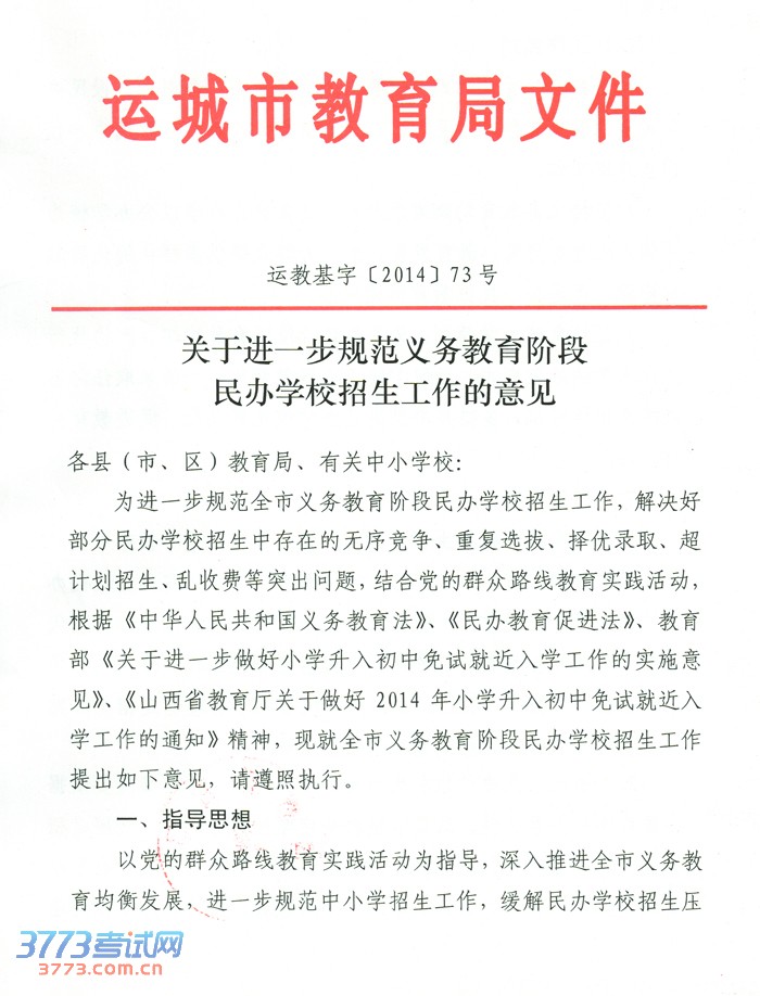 [组图]关于进一步规范2014运城小学初中民办学校招生工作意见
