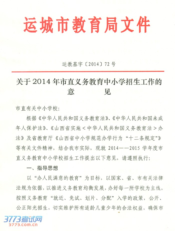 [组图]2014年运城市直义务教育中小学招生工作的意见