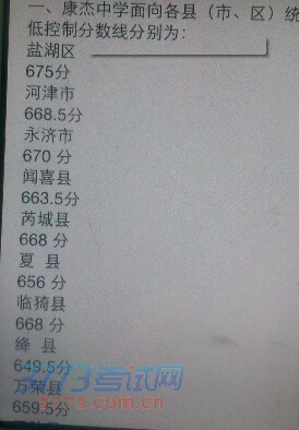 2014运城市区中考统招录取分数线和2014运城各区县中考统招录取分数线网上爆出,2014年运城康杰中学面向运城各县区招生录取分数线发布。