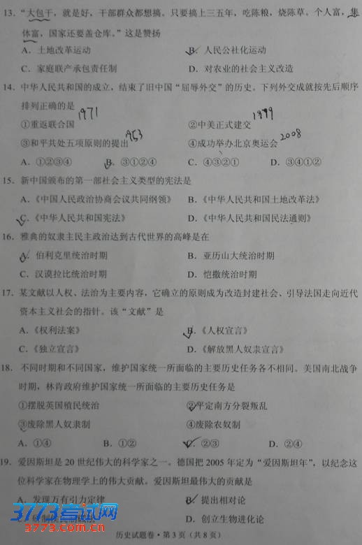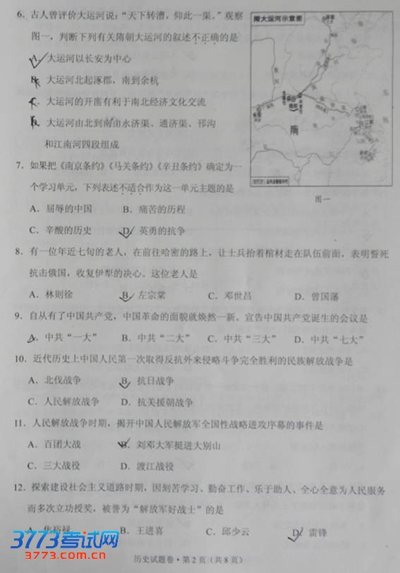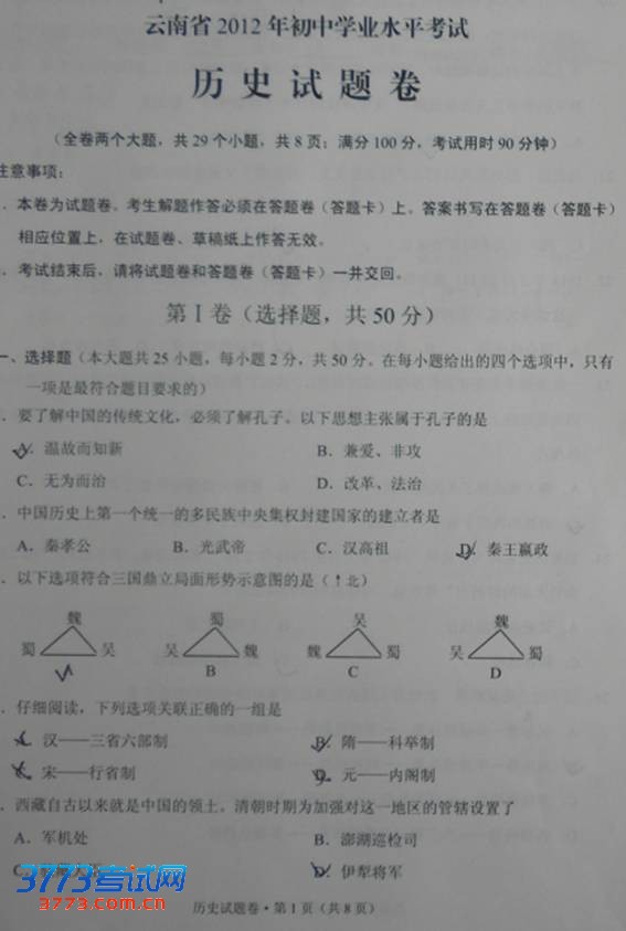 [组图]2012年云南中考历史试题及答案