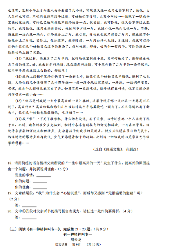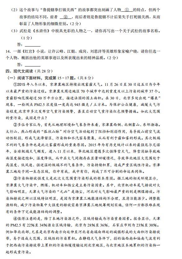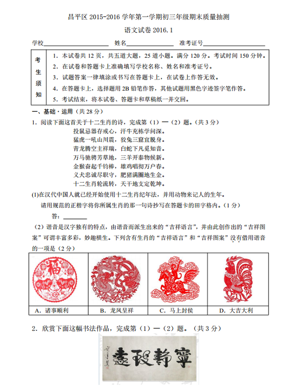 [组图]2016上学期北京昌平初三期末考语文试题及答案