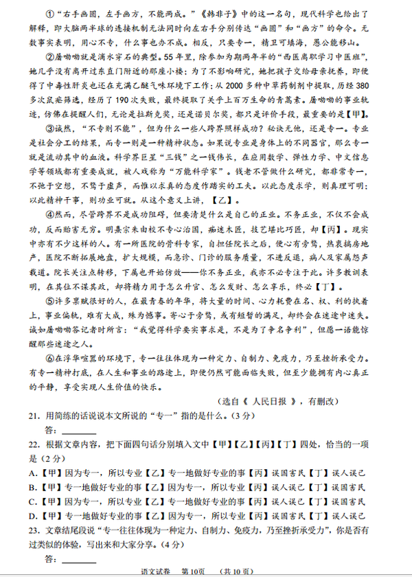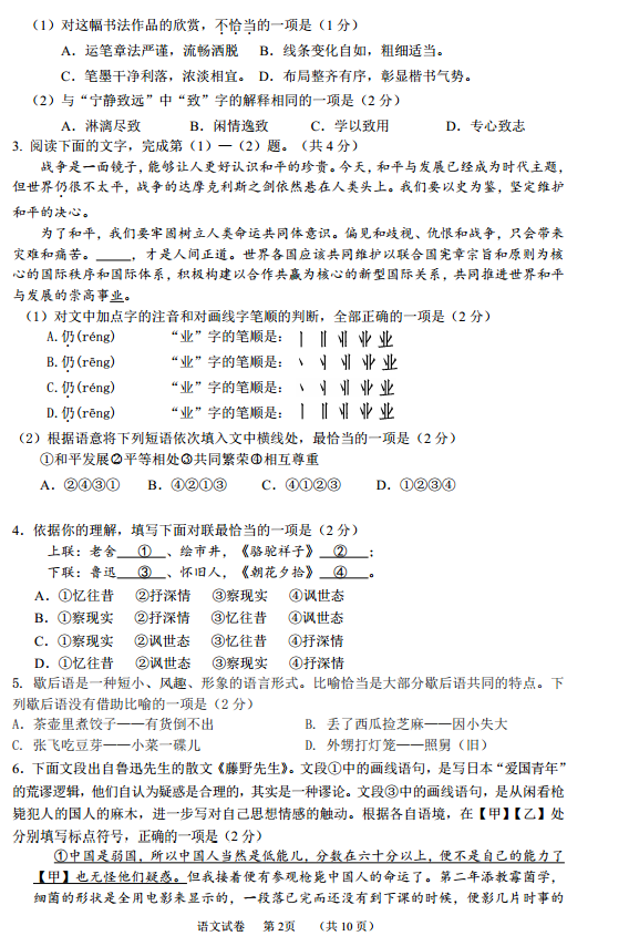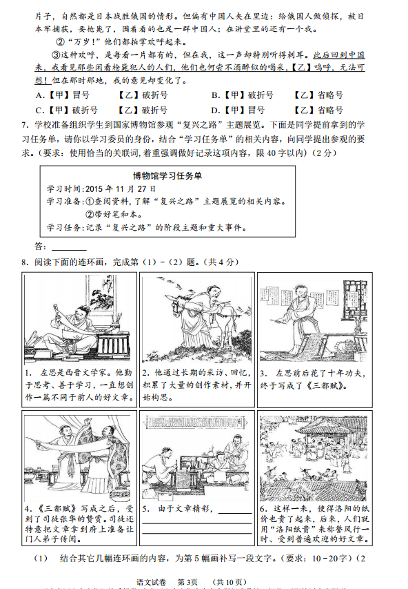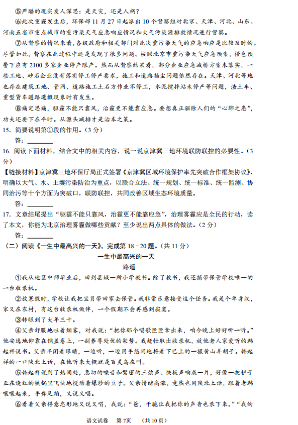 3773考试网2016中考语文正文