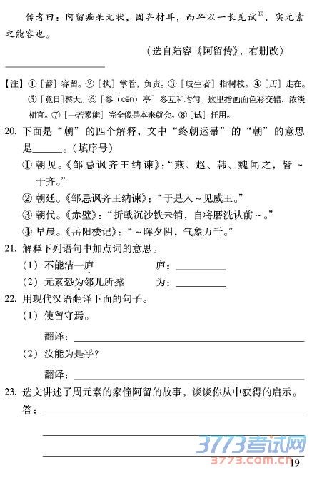 [组图]2016北京中考语文模拟试题及答案(文言文阅读)