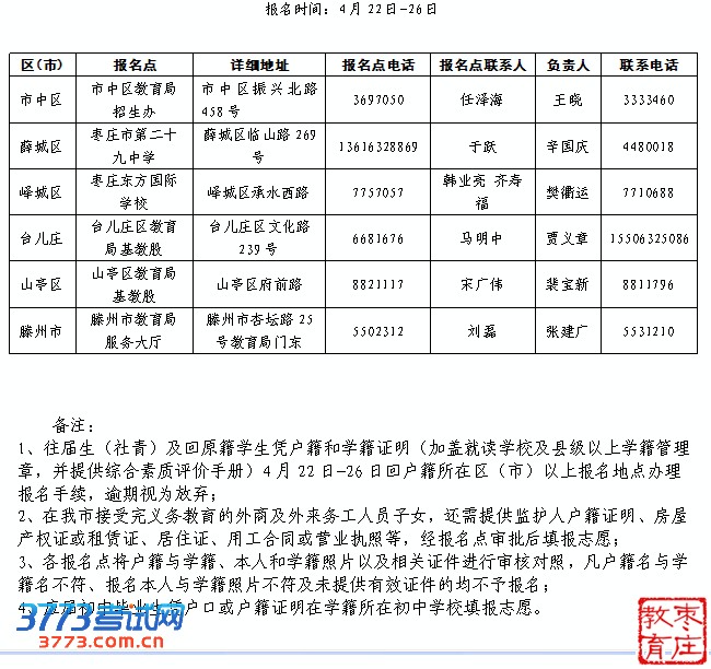 [图文]2013枣庄中考往届及回原籍学生报名地点一览表