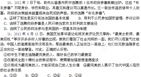 最新2012-2013年中考思想品德冲刺模拟卷(7)