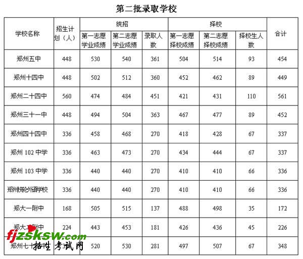 [组图]2010年郑州市中招录取分数线划定