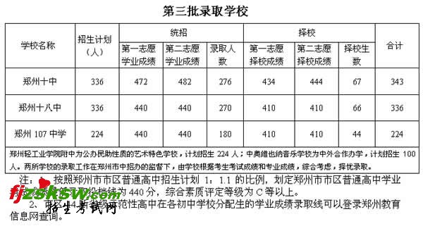 [组图]2010年郑州市中考录取分数线划定