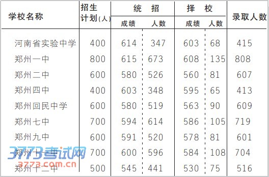 郑州外国语、郑州一中、省实验的分数线分别为624分、615分、614分