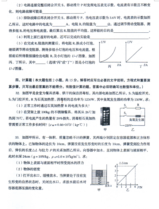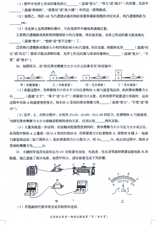[组图]2021自贡中考物理真题试卷发布