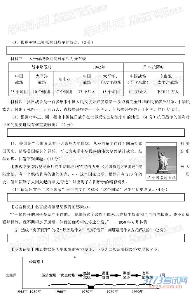 [组图]2015资阳中考历史试题及答案评分标准发布